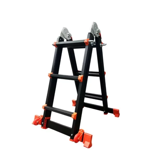 Мобільність: Наявність транспортувальних коліс значно полегшує переміщення драбини по об'єкту, незважаючи на її міцність.