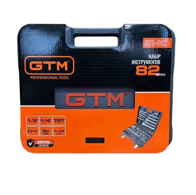Набір інструментів 82 од. GTM GTS-082 1/4"-1/2" (GTS-082) — це універсальний, багатофункціональний і високоякісний комплект, який стане основою арсеналу будь-якого професіонала або автолюбителя. Створений для інтенсивного використання вдома, у приватних майстернях та на великих СТО.