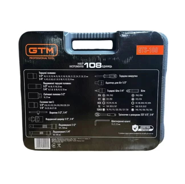 Торцеві біти 1/4'': PH: 1,2 PZ: 1, 2 HEX: 3, 4, 5, 6 SL: 4, 5.5, 7 T: 8, 10, 15, 20, 25, 27, 30;