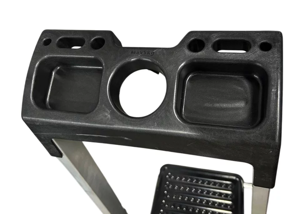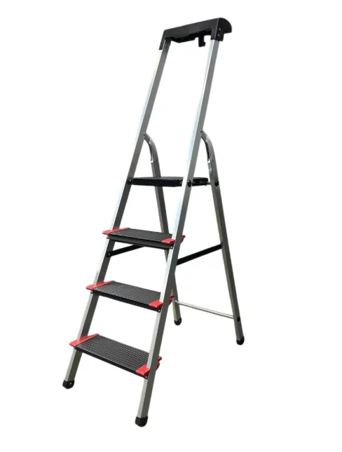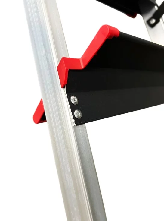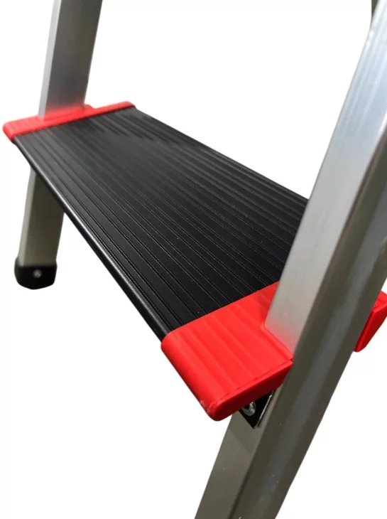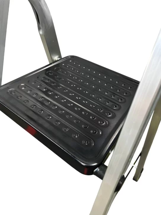 Максимальна безпека: Широкі сходинки глибиною 130 мм забезпечують надійну фіксацію ноги. Міцна металева платформа та антиковзкі упори гарантують стійкість на будь-якій поверхні.