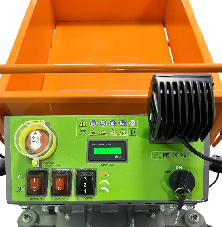Акумуляторний мінітранспортер GTM E50M/32A з великою потужністю та батареєю 32 А·год — це надійний і незамінний помічник, розроблений для цілорічного використання та ефективного транспортування вантажів. Цей електричний візок ідеально підходить для переміщення землі, гравію, каміння, будівельного сміття та інших матеріалів вагою до 500 кг.